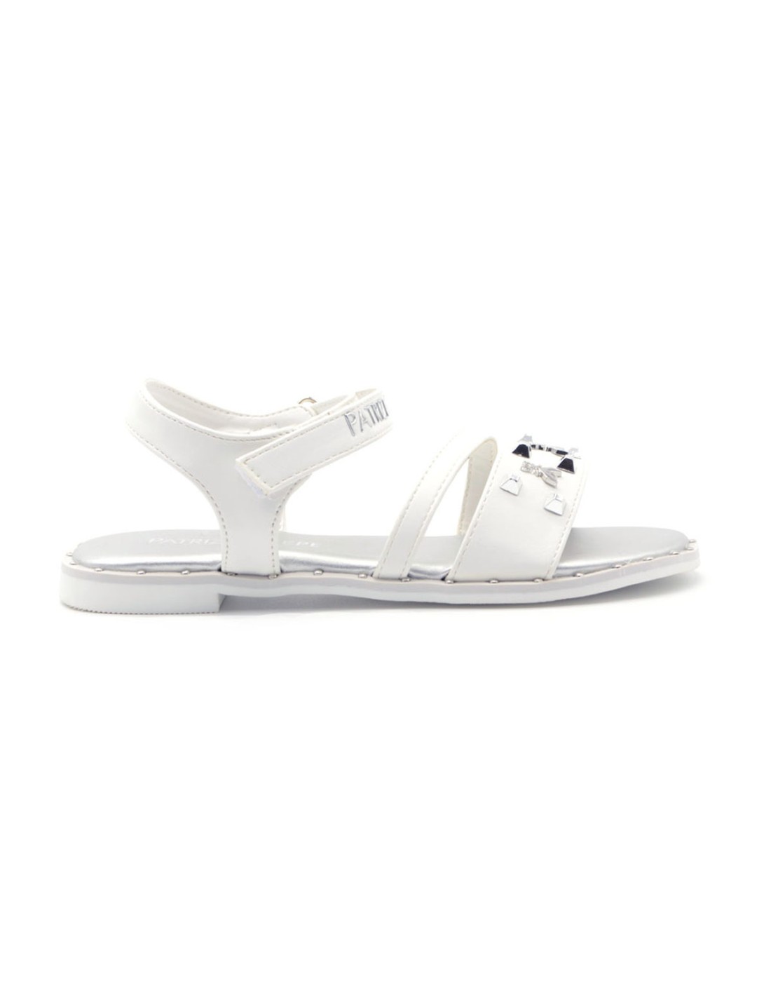 Patrizia Pepe elegant girl sandal in synthetic leather with decorative studs, strap with strap, light and flexible rubber sole.